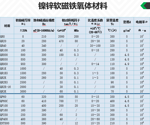 长波、中波、短波和超短波铁氧体质料及磁芯