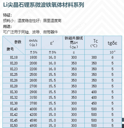 Li尖晶石锂系微波铁氧体质料系列